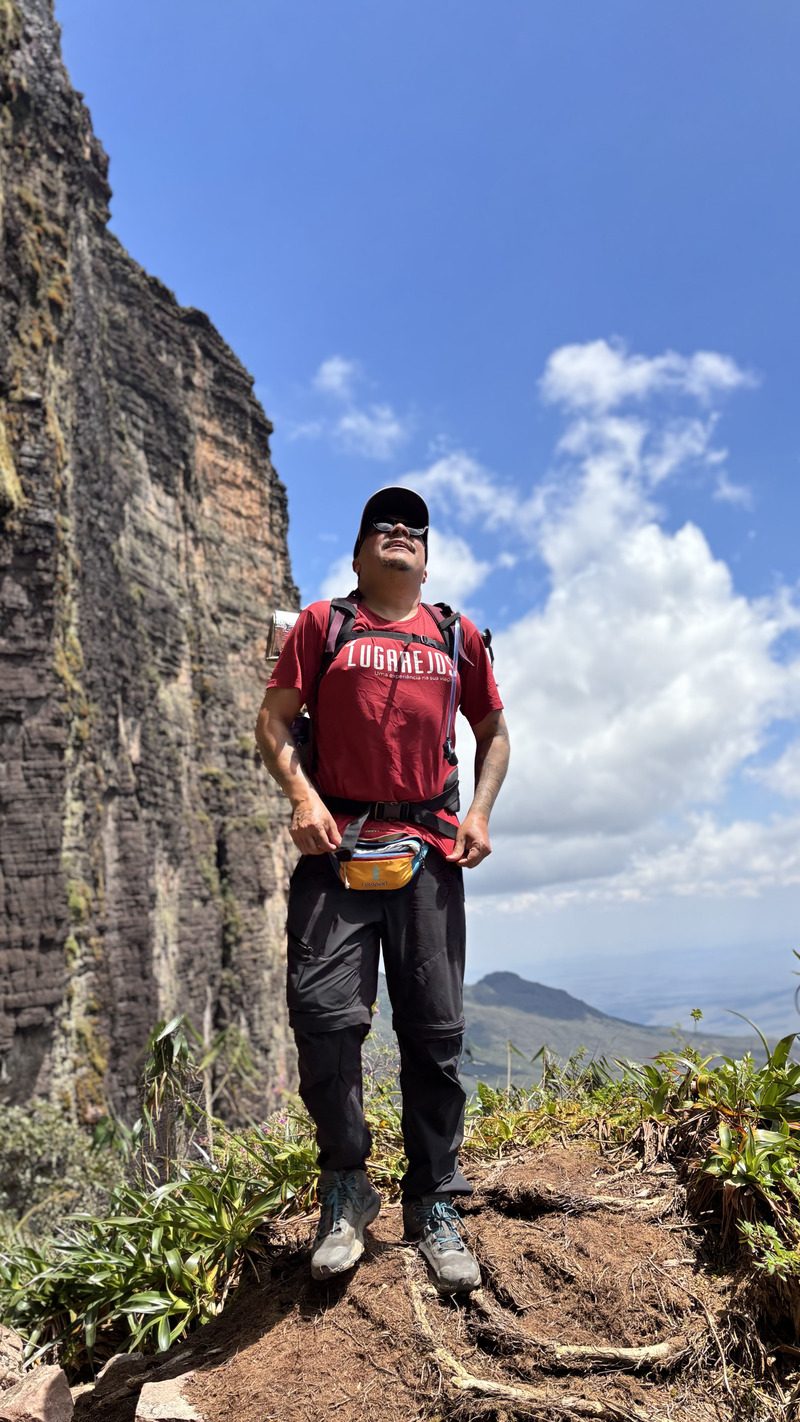 Saímos bem cedo do nosso acampamento para um dia intenso, serão 24 km de caminhada entre subidas e descidas no topo do Monte Roraima. Primeiramente caminhamos até a Tríplice fronteira que une Venezuela, Guiana e Brasil em um dos pontos mais simbólicos da montanha. O cenário é silencioso e vasto, um lugar onde o vento parece carregar histórias antigas.