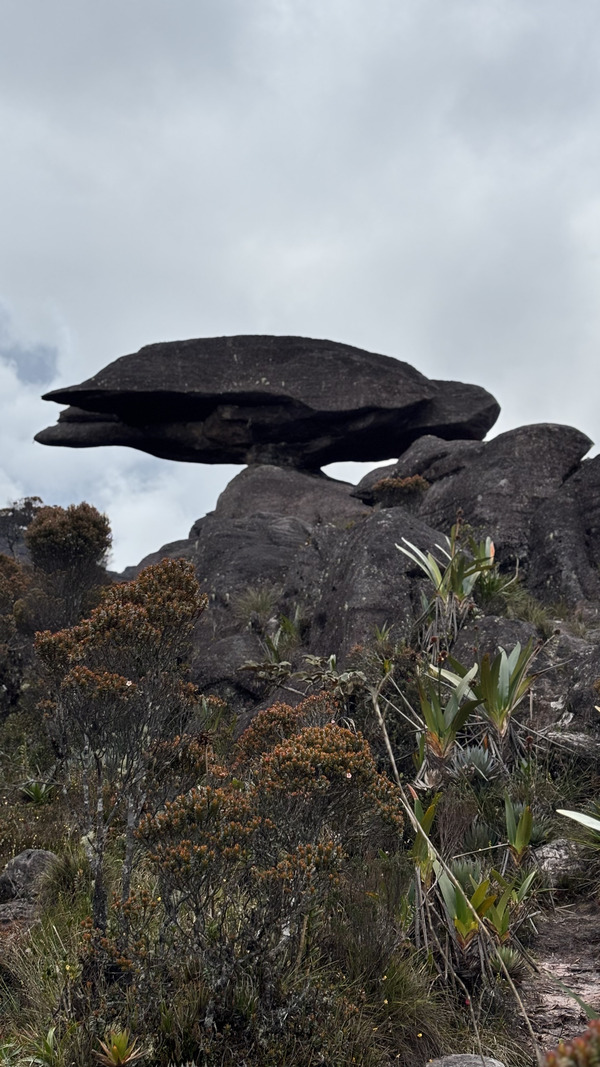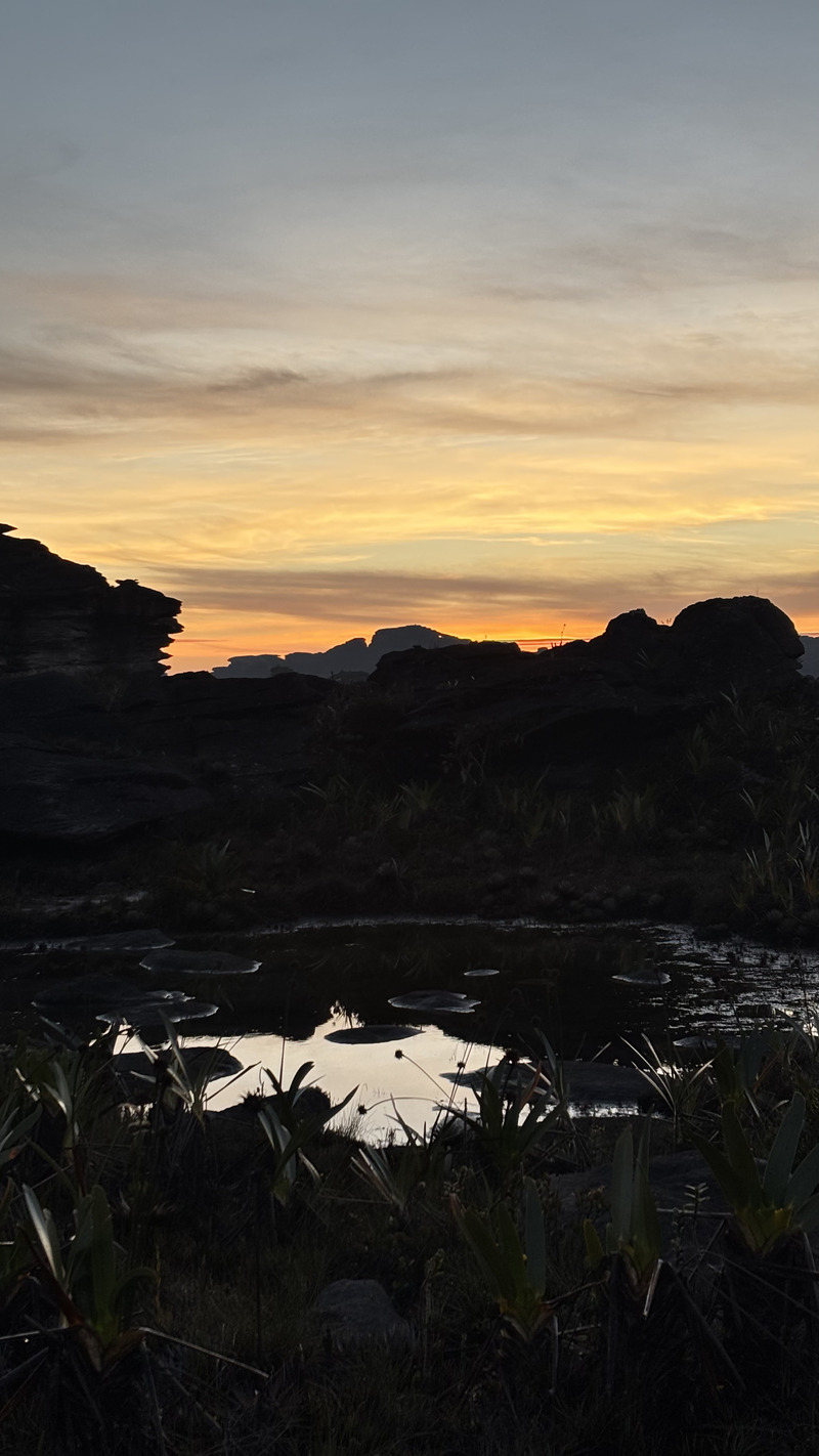 Exploramos o cume do tepuy, caminhando entre formações que lembram esculturas. Visitamos La Ventana, um mirante natural de onde se observa o Kukenan despontando sob o mar de nuvens — um dos visuais mais impressionantes da expedição.
